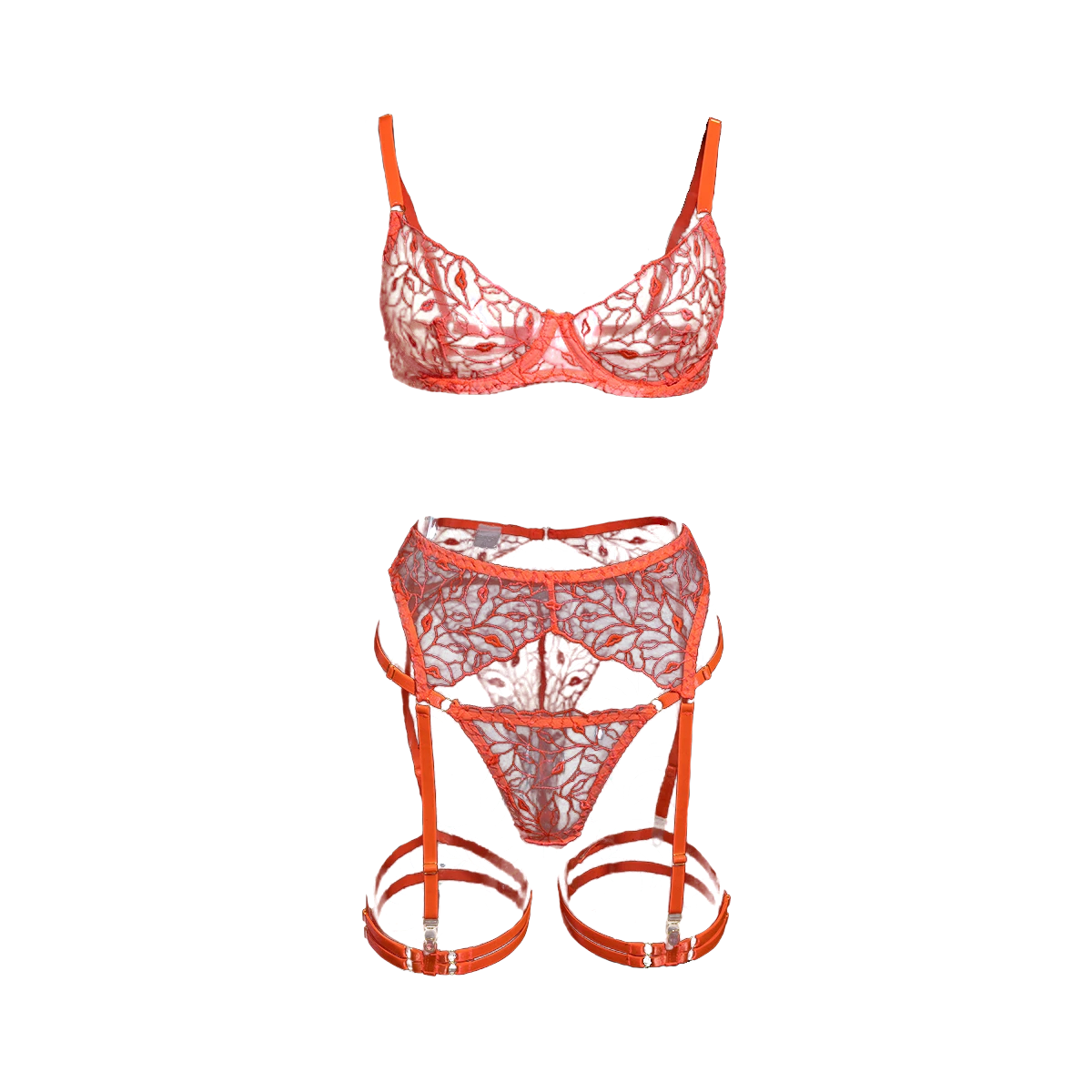 Made with a vibrant orange linen blend, this set features a flirty floral pattern and supportive underwire. The unlined bra and the 3/4 cup shape bring a fun twist to your lingerie collection.