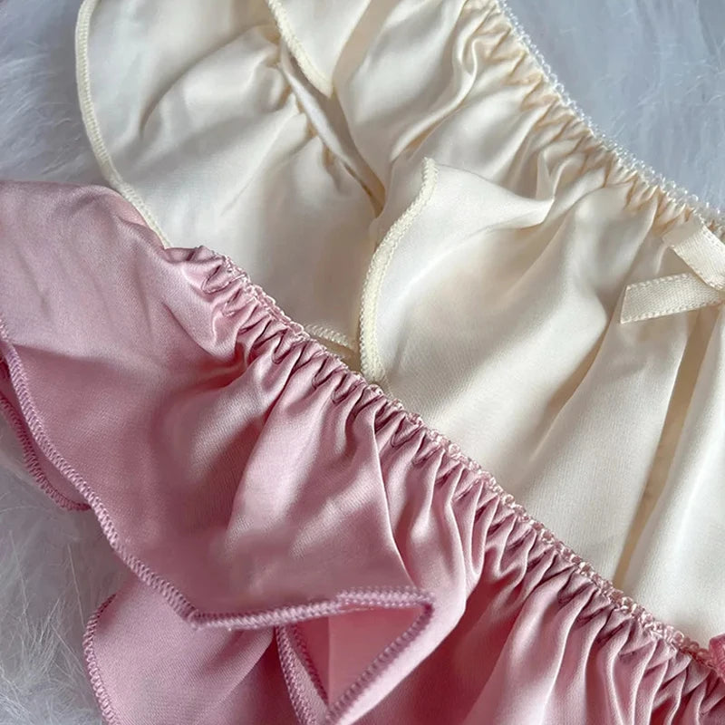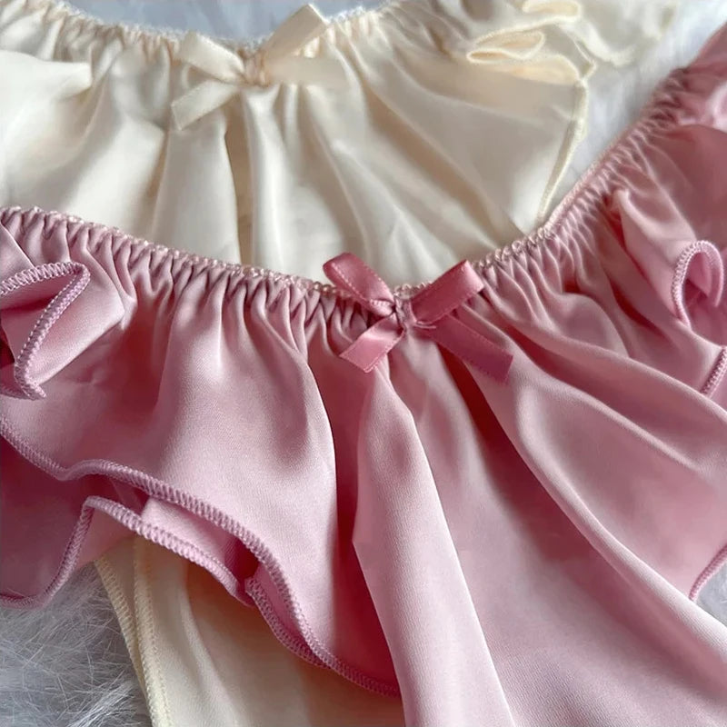 Sexy and alluring, Taisia panties feature delicate ruffled edges and a playful bow.